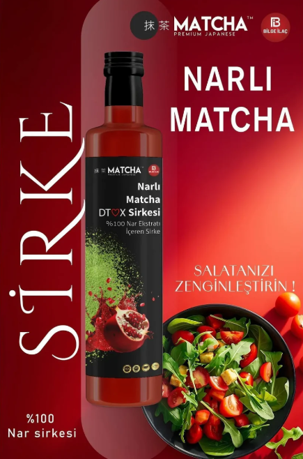 Een unieke combinatie van granaatappel en groene thee (matcha) in de vorm van een gezonde en multifunctionele azijn.
